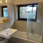 Apartments Meerzeit Komplett villa includes a bathroom with a tub and a shower. A hair dryer and bath sheets are included to enhance your comfort.